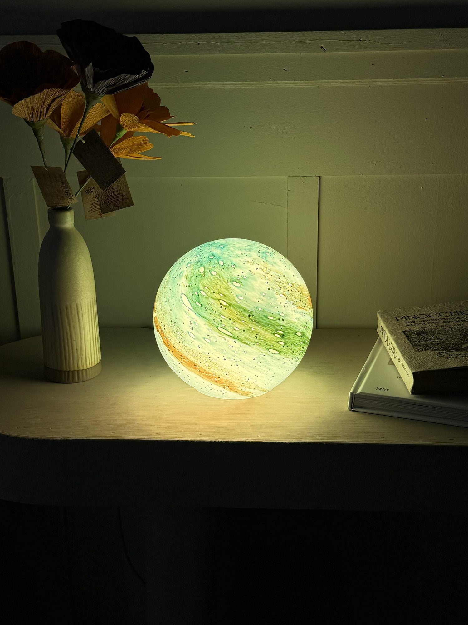 Handblown colour-changing glass sphere lamp - small