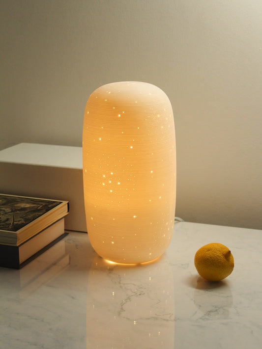 White Ceramic Table Lamp – Starry Dot Design, Tall Cylinder Glazed Base
