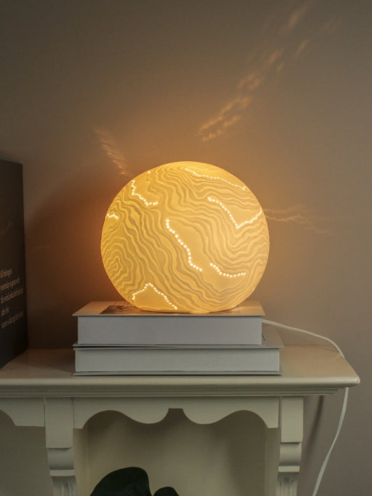 White Glazed Cloud Table Lamp with Light-Transmitting Dot Details – Soft Ambient Glow