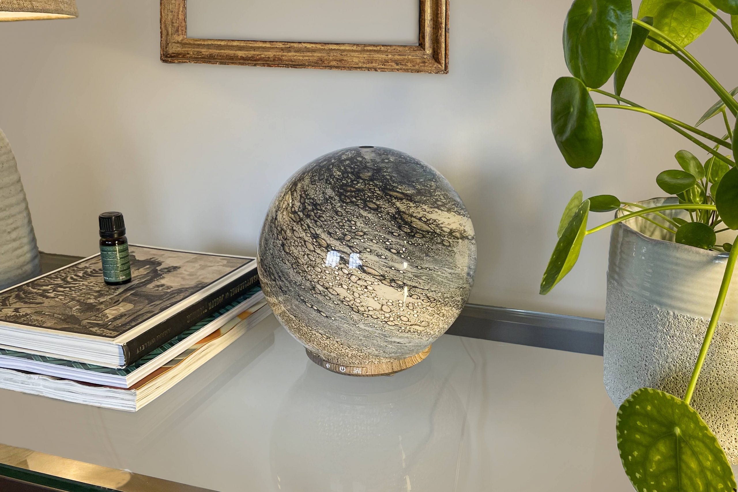 Cordless Rechargeable Chrome based Glass lamp - Sand & Sea