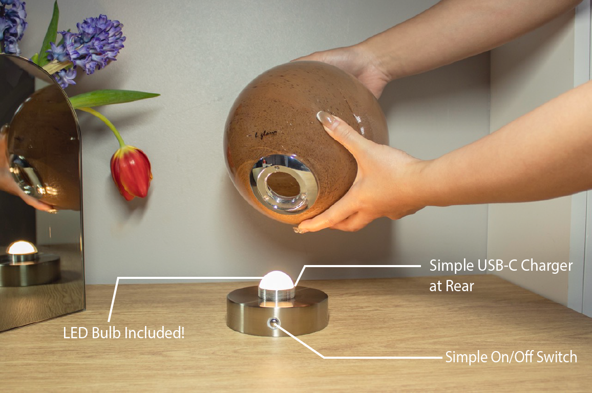 The three features on our chrome-based lamp ensure effortless use: On/Off Switch for simple operation, Included Bulbfor instant illumination, and a USB-C Charging Port for fast and convenient recharging. Designed for both style and functionality, it’s a perfect lighting solution for any space.