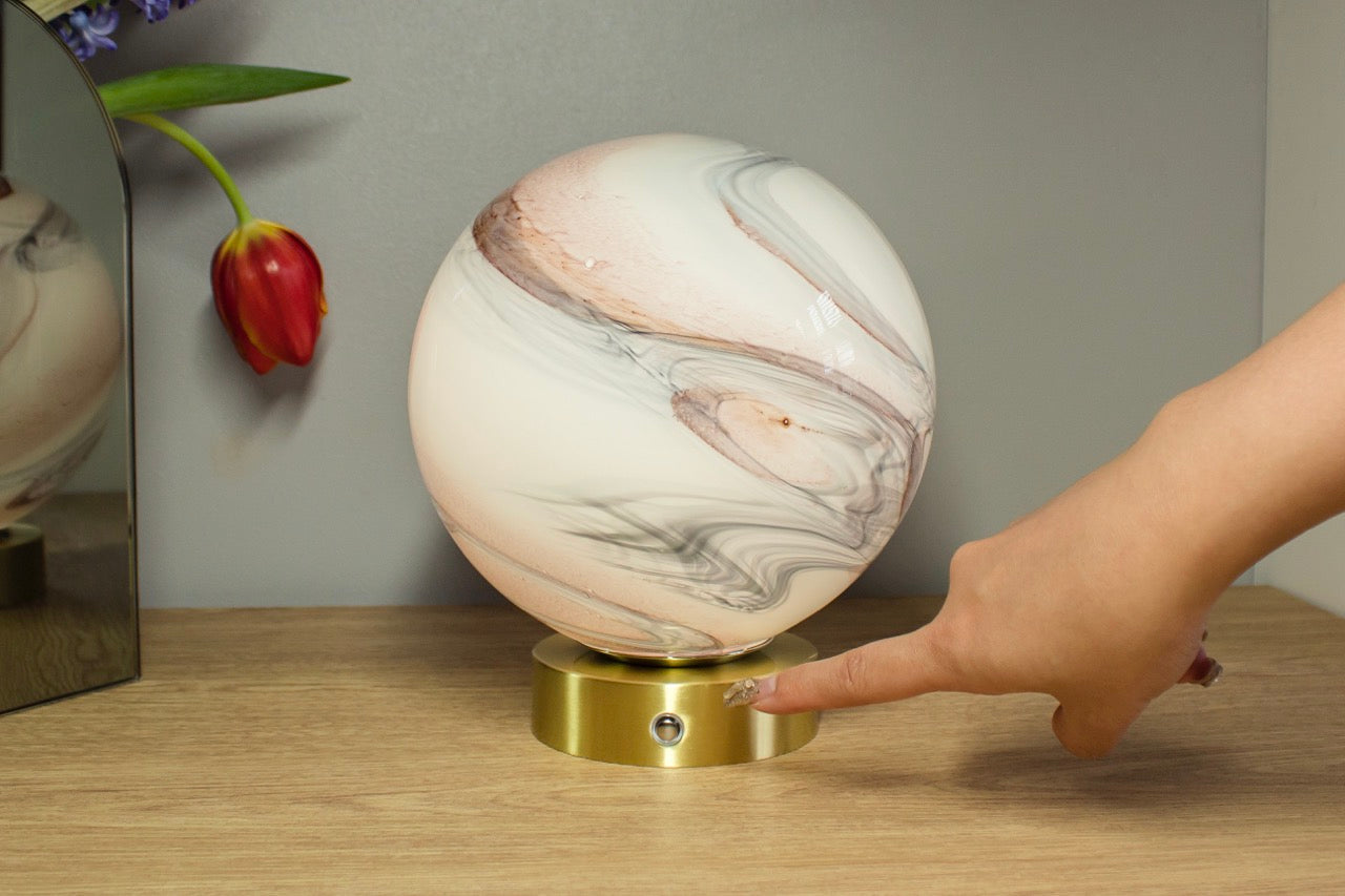 Cordless Rechargeable Chrome based Glass lamp - Sand & Sea
