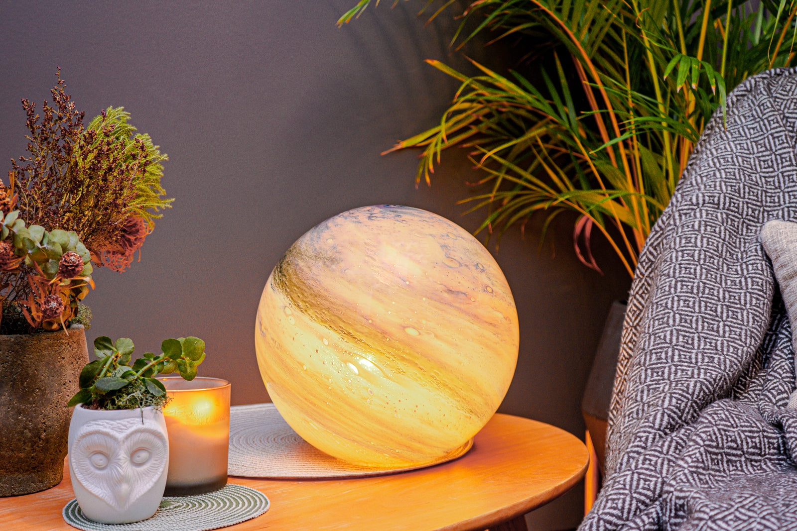 Introducing our newest addition to the glass lamp range. The Aurum Pebble, the golden tones of the Aurum lamp create a luxurious, ambient glow, perfect for adding a touch of elegance to any space. Whether used as a statement piece or for soft, mood-enhancing lighting, the Aurum Pebble effortlessly blends modern design with timeless craftsmanship in an exclusive design, making it a must-have addition to your home.