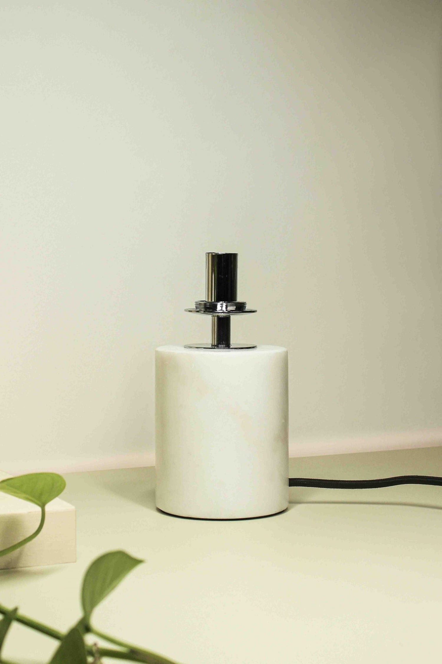 The three features on our marble base hand-blown glass lamp: a solid marble base available in black or white for a timeless, sophisticated look, an in-line switch connected to a 3-pin UK plug for easy operation, and a simple unscrew mechanism that allows you to effortlessly remove and replace the lamp or bulb. All lamps include a bulb!