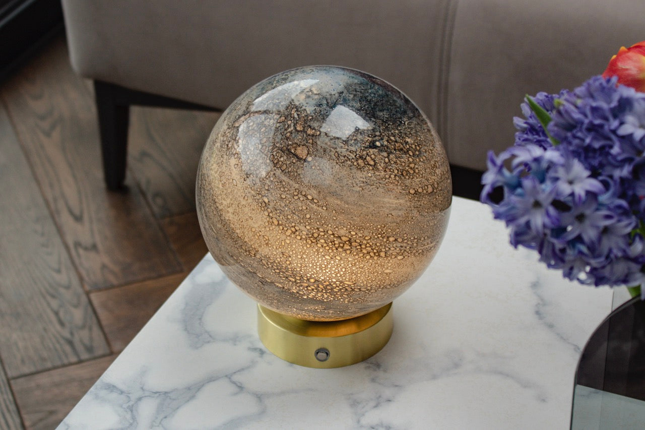 Cordless Rechargeable Chrome based Glass lamp - Sand & Sea