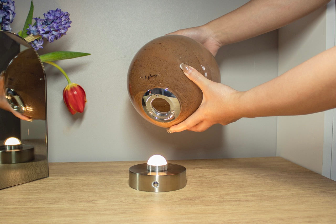 Our Cordless Rechargeable Glass Lamps blend timeless elegance with modern convenience. Featuring a sleek gold or silver base and beautifully hand-blown glass, they add a sophisticated touch to any space—whether it's a home office, bedside table, or cozy living area.